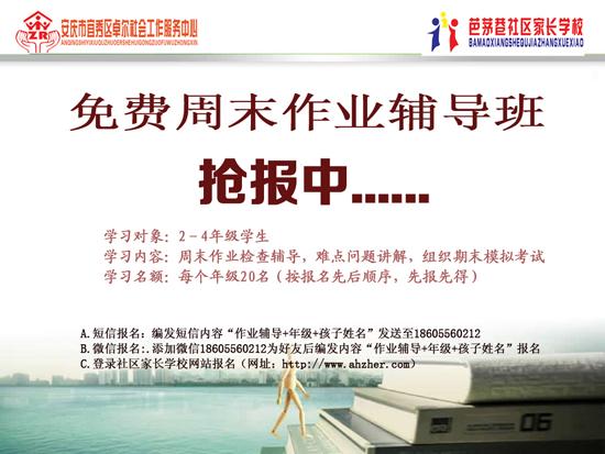 为帮助学生高效完成周末作业,提升学生的学习成绩,帮助家长解决无时间、无精力辅导学生作业的问题。经研究:社区家长学校准备开设免费周末作业辅导班。现将有关情况通知如下: