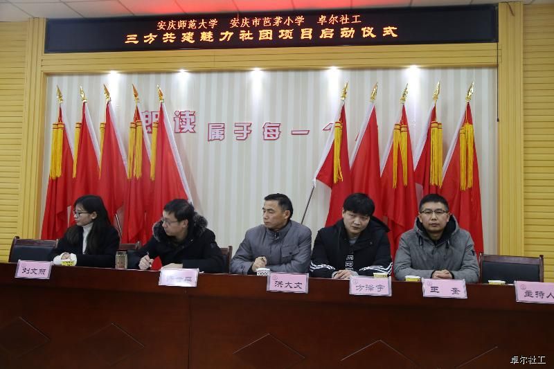1月9日下午,在芭茅小学隆重举行了“安庆师范大学 安庆市芭茅小学 卓尔社工”三方共建魅力社团项目启动仪式,经开区教育局副局长洪大文、安庆师范大学教师教育学院党委副书记许世平、安庆市芭茅小学校长张严、卓尔社工理事长王奎、学校家委会成员以及来自音乐、舞蹈、演讲与主持、足球等社团学生共100多人参加项目启动仪式。